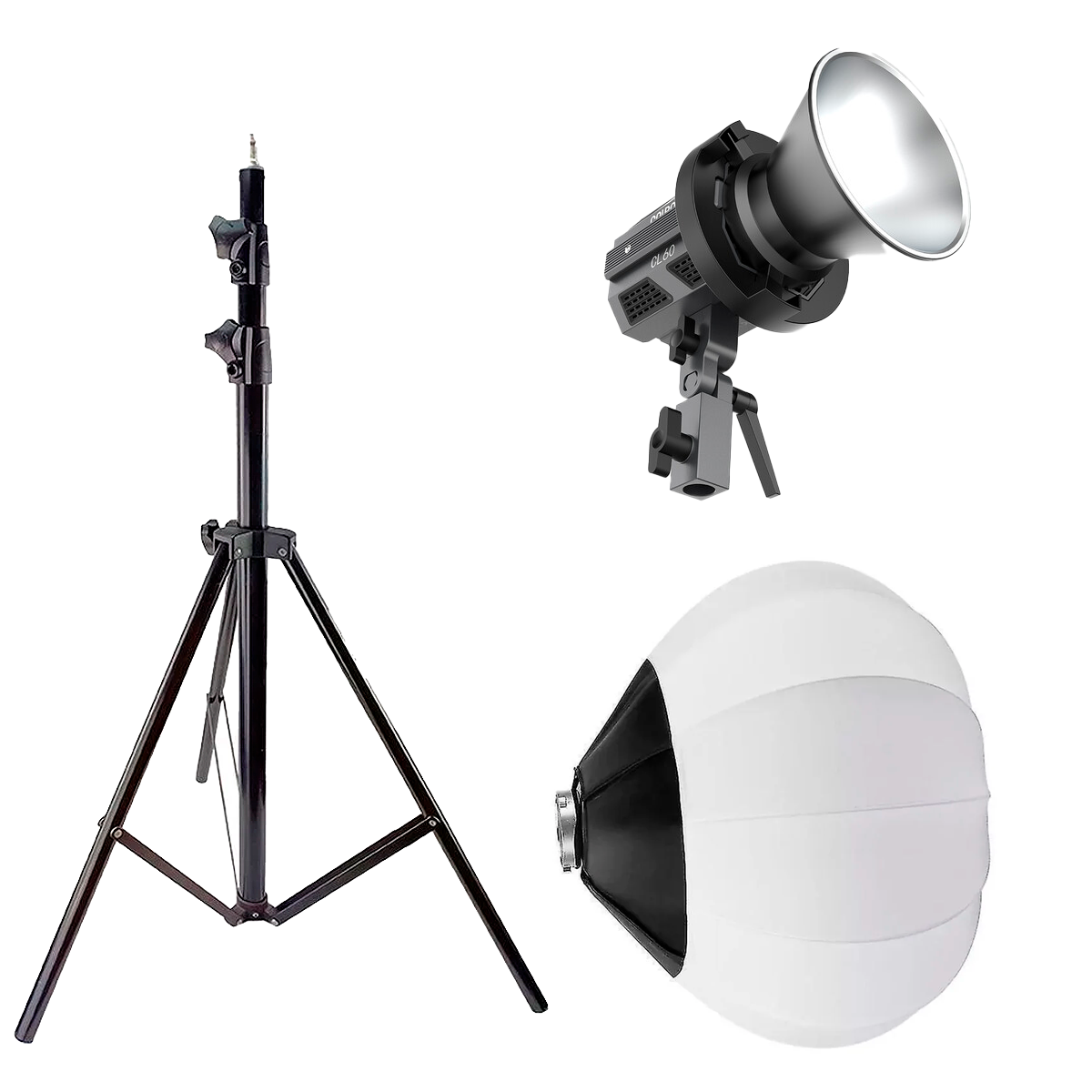 O suporte de luz robusto garante estabilidade mesmo com equipamentos mais pesados, enquanto o softbox lanterna tipo balão chinês proporciona luz difusa e uniforme, reduzindo sombras duras e criando um efeito natural. O iluminador profissional Colbor CL60 Bicolor permite total controle da temperatura de cor e intensidade, adaptando-se facilmente a diferentes cenários e estilos de iluminação.